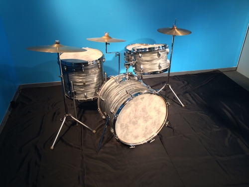 Eugen Giannini hat seine Kessel häufiger in Sparkle-Folien foliert. Pearl-finishes sind seltener, dieses Giannini in grau-geschieferter Pearl-Folie ist eine Rarität und nur äusserst selten zu finden. Das gesamte Set befindet sich, bis auf die Felle, im Originalzustand. Ich habe auch dieses, wie alle anderen in meiner Kollektion, sehr behutsam revidiert. Die gesamte original-Hardware wie auch die beiden Transportkoffer sind noch immer vorhanden.
